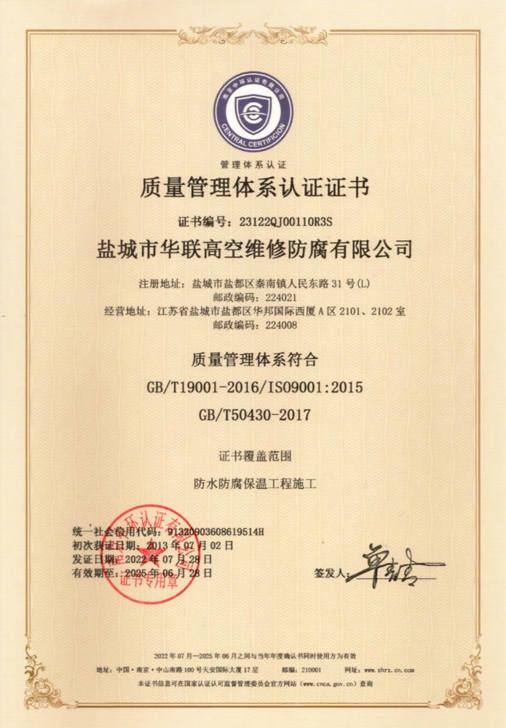 鹽城市華聯高空維修防腐有限公司始建于上世紀八十年代,系專業從事風力發電機塔筒防腐,塔筒維護,塔筒補漆,塔筒噴字等工程。不停產,不搭手架,高空懸吊施工的一級高空安全資質、一級高空防腐施工資質、二級建筑施工資質的高空建修、防腐工程、公司。現已發展集科研、設計、施工為一體的的江蘇省較大的高空建修,高空防腐施工企業;公司注冊資金3008萬元,流動資金8000多萬元;擁有高修技術科研高修工程設計、高修工程施工三大技術與施工組織體系;公司擁有一流的技術施工隊伍,其中有高級職稱36 名,中級職稱126人。具備一級防腐資質、一級安全資質及二級建筑資質,公司下轄五個分公司和十八個辦事處,為全國數百家企業解決了若干“高、大、難”的特殊工程項目,填補了我國建筑史上的空白。      風電塔筒分公司專業承接風電場風機塔筒維護,風機塔筒除銹防腐,風機塔筒油漆修補,風機塔筒噴字寫字,風機塔筒vi標識施工公司等工程的施工,主要應用于風力發電公司、風電場、風電塔筒制造廠家以及風力發電機主機廠家。公司承諾:凡由我司施工過的單位,在保質期內我司定期回訪或電話聯絡,詢問工程質量情況;若在保質期內有質量問題我司免費維修。       我公司先后為江蘇龍源風力發電有限公司、河北龍源風力發電有限公司、海南龍源風力發電有限公司峨蔓風電場、云南龍源風力發電有限公司楊梅山風電場、龍源雄亞福清風力發電有限公司、龍源平潭風力發電有限公司、龍源莆田風力發電有限責任公司、福建東山澳仔山風電開發有限公司、福建省平潭長江澳風電開發有限公司、龍源(濱州)風力發電有限公司、龍源(張家口)風力發電有限公司、江蘇保龍塔筒制造有限公司、江蘇宇杰鋼機有限公司、江蘇金鋒佳特機電有限公司、無錫寶南機械制造有限公司、上海電氣風能設備有限公司、國華瑞豐榮成風力發電有限公司、中電國際新能源有限公司、中節能甘肅風力發電有限公司、中船重工重慶海裝風電設備有限公司、內蒙古金崗重工有限公司、內蒙古三興重工有限公司、內蒙古新錦風力發電有限公司、內蒙古國網新源控股有限公司、內蒙古同盛風電設備有限公司、內蒙古國電投資股份有限公司風電分公司、山東長島風力發電有限責任公司、中國石油天然氣第七建設公司、甘肅中電科耀新能源裝備有限公司、葛洲壩集團機電建設有限公司、中國華電重工集團有限公司、北京京能新能源有限公司、通榆東寶風電塔筒制造有限公司等風力發電機塔筒進行維護、防腐、刷漆、補漆、清洗、噴字、寫字以及葉片的清洗、防腐、探傷、檢修、美化等項目。由于風場的特殊氣候和風速的影響,經過我公司與各公司風場的配合以及我公司嚴格的管理規章制度,所有的項目都順利完工并驗收合格質量優。 華聯的昨天感謝您的信任和關心 華聯的明天更需要您的厚愛和支持 華聯人將不斷拓新進取,為人類的發展建設和生態環境的保護作出更大的貢獻...
